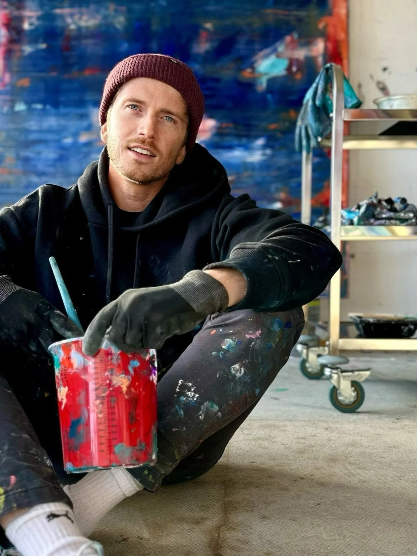 Since he approaches life with a spontaneous spirit and considers this one of his strengths, he wanted to incorporate this element into his art. In search of more freedom in the painting process, he began using the painting knife and squeegee as tools.